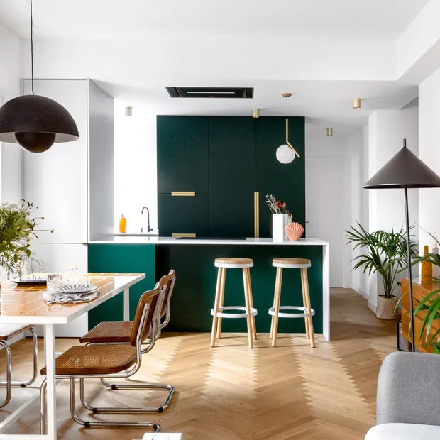Decoración con colores profundos: verde esmeralda y azul profundo